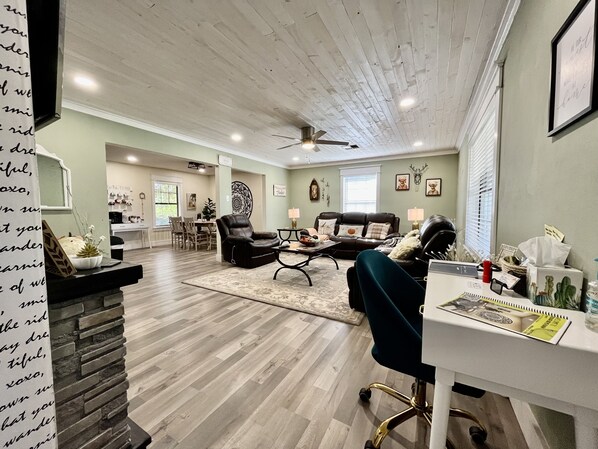 Unwind at Four Boys Farm, a serene retreat nestled on 50+ acres just outside Brenham city limits. Enjoy the peaceful ambiance with a fire pit, fishing pond & hiking trail nearby and indulge in the fully equipped kitchen stocked with amenities like Keurig Duo and Waffle Maker.