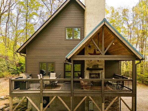 In addition to beautiful and thoughtfully curated living and sleeping spaces, Little Bear Lodge also offers indoor and outdoor recreation space. After a day of hiking or biking, enjoy your evening meal on the deck, complete with a gas grill and outdoor dining table for 6. To unwind, challenge the kids to a friendly ping pong match or a game of darts! Be sure to take advantage of the cozy seating area around the wood burning outdoor fireplace - ideal for roasting s'mores!