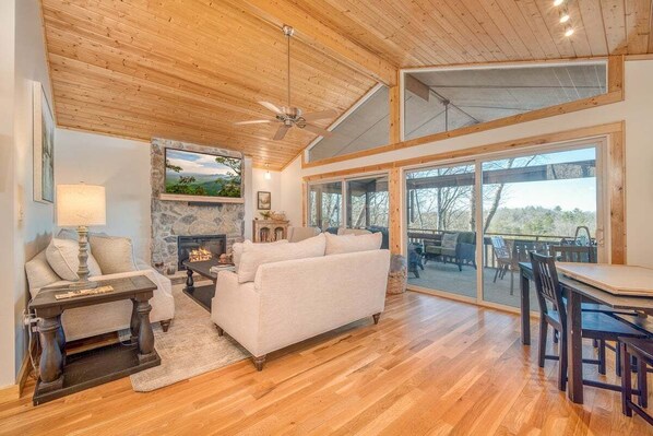 Treetop Retreat provides guests multiple options for soaking up the outdoors. In addition to the large screened-in porch, this home boasts sliding doors leading to open deck space from all living spaces and bedrooms!