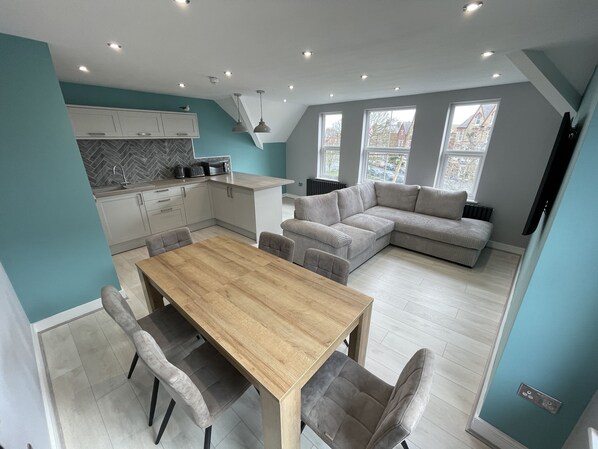 Central Bridlington is the setting for this newly renovated penthouse, where a spacious living room and designer kitchen come together. With two newly decorated bedrooms, each with king-size beds and 43-inch Samsung smart TVs, there's ample space to unwind.