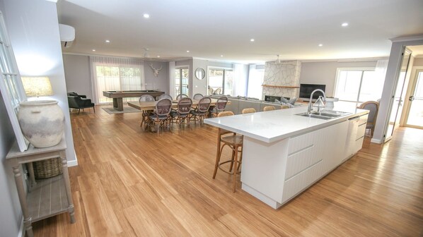 The kitchen is a dream for sharing meals with family and friends, fully equipped and a hidden butler’s pantry decked out with all the conveniences you could hope for.