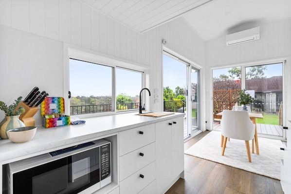 Fridge, microwave, stovetop, coffee/tea maker - Cute 1-Bed Tiny House with Garden in Nature (Bridgeman Downs)