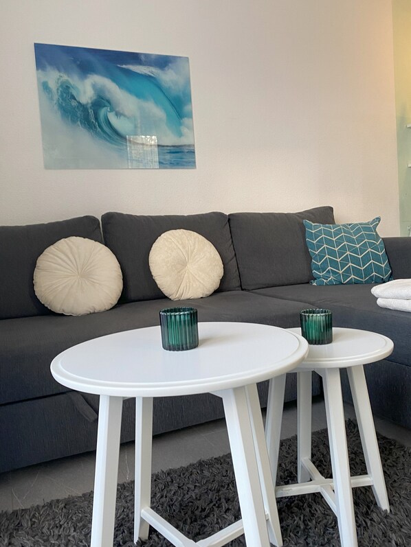 Die Unterkunft war für unsere Situation mit 2 Senioren super. Keine Stufen, 2 Bäder mit barrierefreien Zugang zur Dusche. Komplette Küche mit großem Kühlschrank und in beiden Zimmern Tisch und Fernseher. Die Bäder und die Böden sauber. Leider einige Haare auf der Schlafcouch. Diese sollte mal ausgetauscht werden da sie keine vollwertige Schlafgelegenheit für 2 Personen und ziemlich durchgelegen ist. Die Balkontüren im Wohnraum waren leider defekt. Auf der kippbaren Türe war schon ein Hinweis, sie nicht zu öffnen, die zweite hatte keine Kippfunktion und hat unten auch schon nicht richtig verriegelt. Auch ein Klodeckel war nicht fest und rutschte hin und her. Die Dusche war schön, aber es dauerte mindestens 2 bis 3 Minuten bis warmes Wasser kam.Die Lage ist super und Parkmöglichkeiten sind vor der Wohnung viele vorhanden.