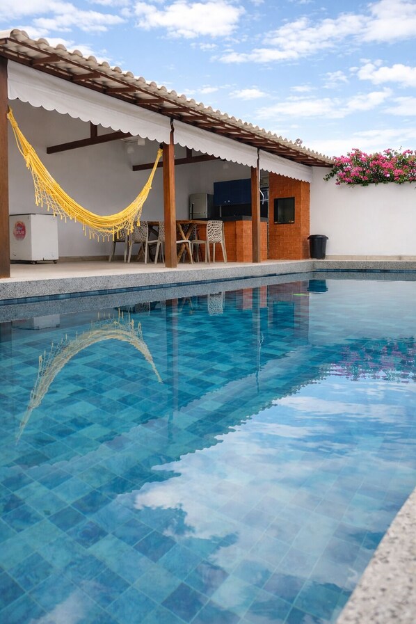 Casa com piscina, churrasqueira, 3 suítes completas com ar provides a garden and more. Guests can connect to free in-room WiFi.