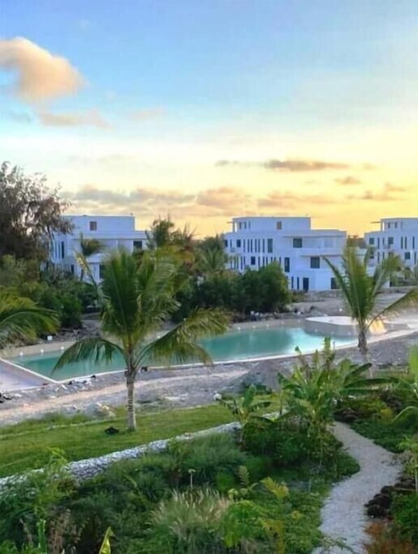 Welcome to The Soul, a lovely beachfront apartment at Paje Beach. Unwind in the spacious living room with TV and dining table or on the balcony overlooking lush greenery. Take advantage of the shared rooftop patio and huge laguna pool, perfect for relaxation.