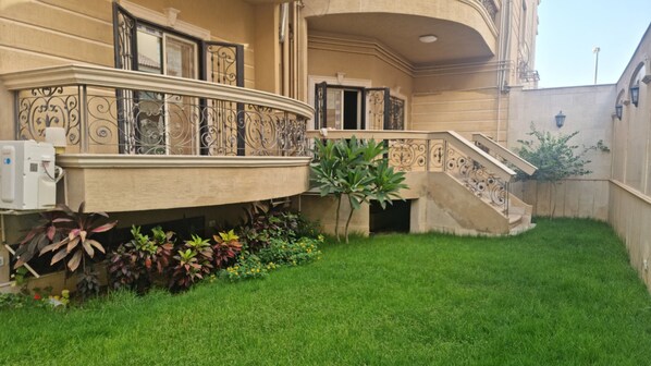 In this 5th Settlement apartment, unwind in one of two bedrooms offering a soothing atmosphere with king and twin beds. Complete your stay with three bathrooms featuring bidets and bathtubs, AC for comfort, a washing machine for convenience, an iron to look sharp.