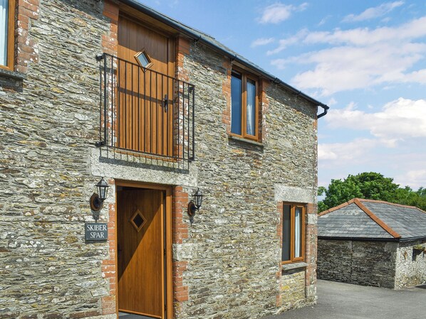 Experience the tranquility of North Cornwall's countryside at Skiber Spar, a beautifully renovated barn with spacious interiors and abundant natural light. With comfortable twin sofas, Freeview TV, and magnificent wooden beams in the open-plan living space upstairs, you'll feel right at home.