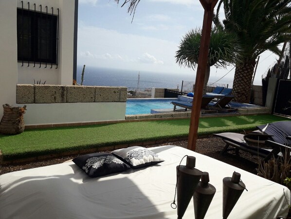 LUXURY VILLA OCEAN VIEWS. PRIVATE HEATED POOL, JACUZZI, BBQ, WIFI, CARS PARKING