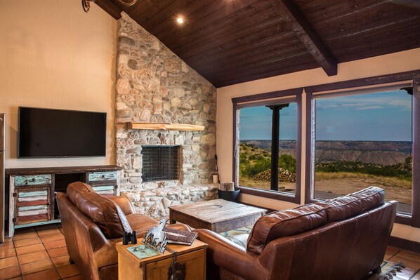We loved our view and the sense of privacy and isolation. Although there were neighboring properties one would never know it as they sat on the front porch overlooking the canyon. It was so peaceful. The location to the entrance to Palo Duro Canyon was just minutes away. The cabin was very clean and the management was very friendly and responsive. The only real complaint we might have had was that our trip was way too short and we didn’t get to spend as much time at the cabin just chilling and enjoying the view. I hope to go again with the intention of making up for that. Whatever you do, allow yourself some long mornings and evenings to just sit on the front porch enjoying the beautiful and peaceful view of the canyon.