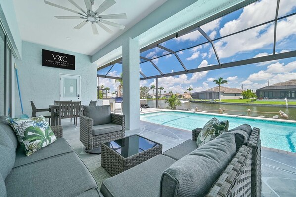 Villa Hermosa isn’t your average vacation home but your own personal paradise in the heart of Cape Coral, Florida. This 5 bedroom, 5 bathroom waterfront haven has been thoughtfully designed for those who dream of a vacation that blurs the line between indoor comfort and Florida’s outdoor beauty.