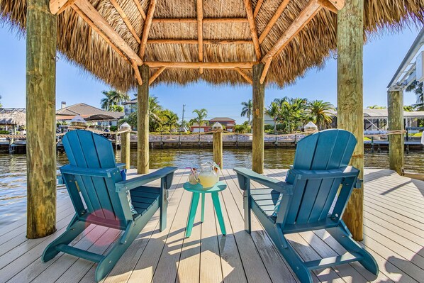 Villa Serena - Fully stocked, and beautifully furnished 3 BR/ 2 bath direct access waterfront Villa with heated pool, hot tub, dock, kayaks, a kayal launch and much more. Located on a great saltwater canal minutes away from open water. Close to shopping, restaurants, and entertainment. Sleeps 6 One non-shedding dog up to 35lbs allowed - $150 pet fee applies - we ask for pre-approval.