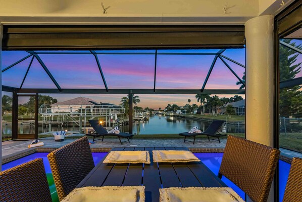 Relax and unwind in the lanai or enjoy a refreshing dip in the pool while taking in the amazing sunset and sunrise views. The bar by the pool is perfect for entertaining, and the largest view of the canal ensures you'll never tire of the picturesque scenery.