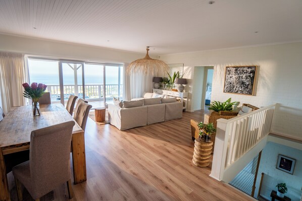 Escape to this beautiful house in picturesque Cape Town. Step out onto the balcony and feel the sea view take hold. This spacious, elegant beach house has 5 gorgeous bedrooms, 4 en suite. The open plan kitchen dining and lounge area are designed for ease and flow. The 6 bathrooms are equipped with luxurious amenities like a bathtub, bidet, and hair dryer.
