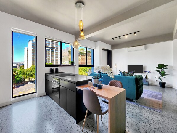 In the heart of Cape Town's CBD, The Duke building offers modern comfort and style. Enjoy panoramic views of Table Mountain from the rooftop pool or unwind in the fully equipped apartment with uncapped WiFi, a king-sized bed, washing machine and 24-hour security.