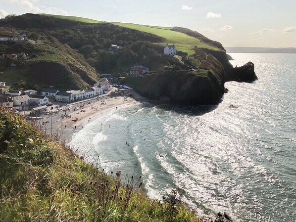 Aberporth is 5 minutes’ drive away and offers pubs, cafés and two stunning beaches, it’s the perfect destination to explore the three counties of west Wales being centrally located to Pembrokeshire, Carmarthenshire, and Ceredigion. Travel south to the traditional market town of Cardigan, here the beautifully restored castle is not to be missed with 900 years of history to uncover. Enjoy a short walk into the village to discover the traditional Welsh pub or a freshly brewed coffee in the village café. There’s so much to explore in Cardigan Bay but if you want a day out to Pembrokeshire you can reach the well-known family attractions of Oakwood Theme Park and Folly Farm Adventure Park and Zoo within an hour’s drive. Beach 1 mile.