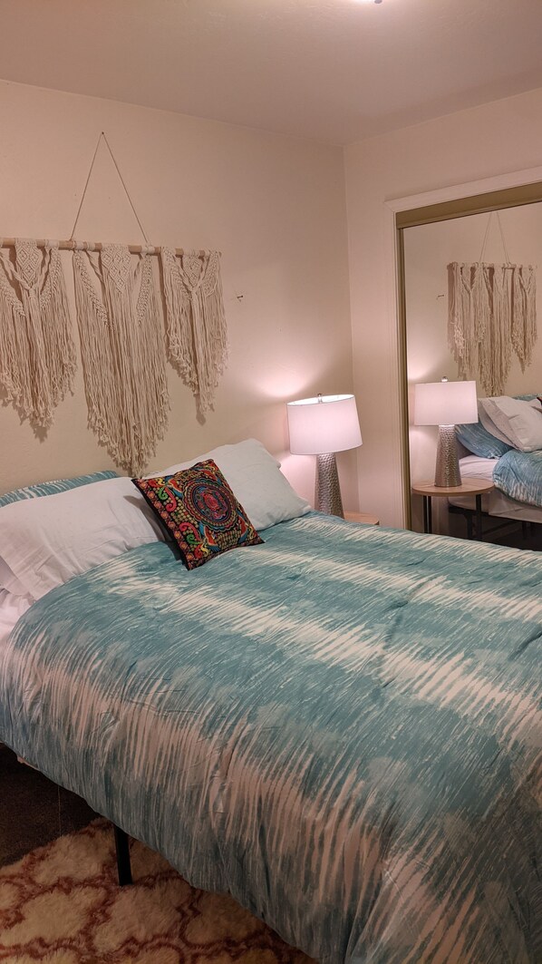 In the heart of Carlsbad, The Oasis offers a cozy retreat with a gas fireplace, comfy queen bed, and fold out chair-bed. Enjoy the lush yard's covered patio for al fresco dining or relax in the hot tub under starry skies.