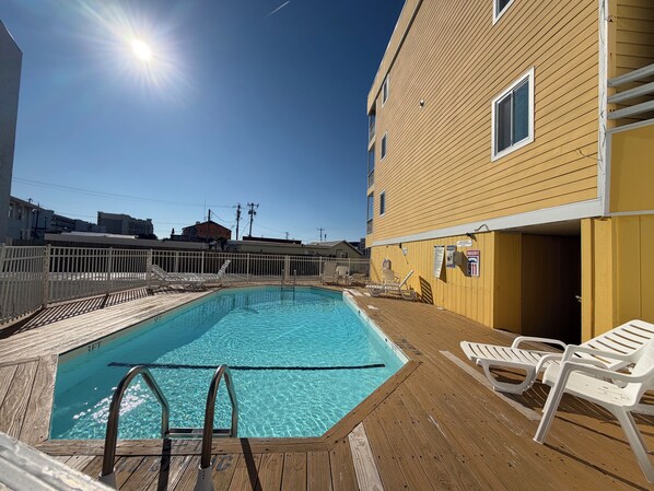 On beach with outdoor pool, near Carolina Beach Boardwalk