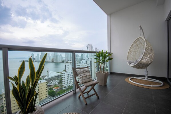 Located in the heart of Cartagena, this stylish apartment boasts breathtaking views of the bay and city from its 15th-floor perch. Enjoy a calm retreat with fast WiFi, powerful A/C, a fully equipped kitchen, washing machine, iron/board and hot water.