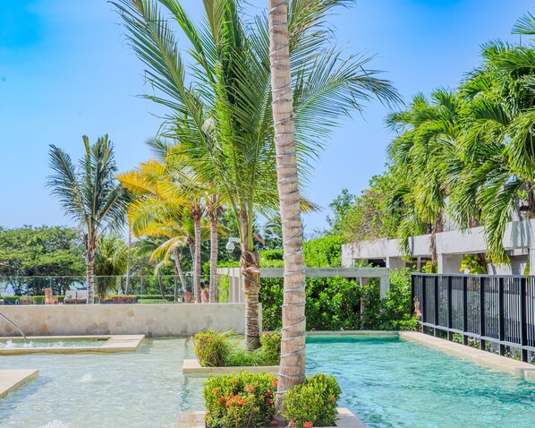 Property was great. It was super clean and the entire building was really clean. The pool is also clean and walking distance to the beach. Please note that you have to reserve umbrella and chairs at an extra cost via an app. You reserve for the next day the day before so make sure you get it done because they sell out quick.