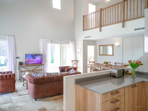 Villa #9 was big enough for a family of 5 and 2 grandparents. The villa was spacious and modern. Although you are in amongst other villas, when you’re outside it is very private with views into the forest. The complex isn’t huge but a nice touch was the host being available on site in the spa reception any time. Jeanne was very friendly and helpful whenever we needed to ask a question. There is no signal in the area so the WIFI is definitely needed, it was fast enough to stream the likes of Disney+ and Netflix without a problem. A few things to note about our stay, there was a rather bad wasp problem around the pool for our entire stay, in general they caused us no bother but the kids were a little more disturbed by them. The air con in the downstairs bedroom was not pumping effectively. This was mentioned to the host who did get a repair team out but for the size of the room it still didn’t feel adequate. We were told we would get a linen change half way through our stay but unfortunately that never happened, not really a problem but would have been nice to have as it was mentioned to us upon booking. The villa was generally very clean when we arrived however, if you have ever travelled with young children like ours, you’ll be aware of how many toys/drink cups get thrown to the floor and roll, which did highlight some missed areas. Something which could easily be rectified would be to add hooks, although spacious there was nowhere to hang towels. The area is lovely though.