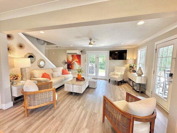 Common area: Living Room Queen Sleeper Sofa (Sleeps 2). Access to powder room, outdoor showers, &/or the other 9 showers in the compound.