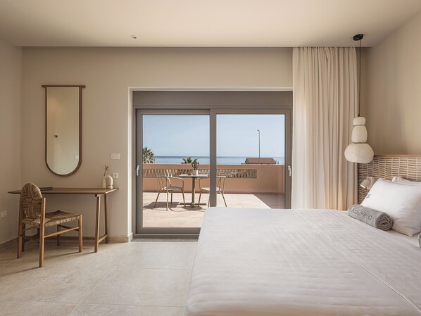 Bedroom 6: King size bed (1.80x2.00), A/C, 42’’ Smart Satellite TV, ensuite bathroom with shower, pool, and sea view