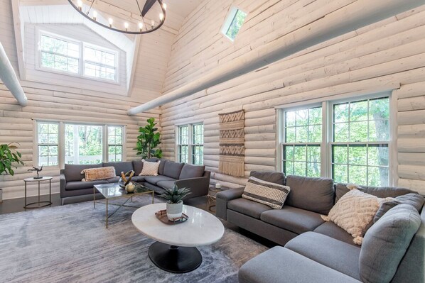 Spacious 5-bedroom Cabin on 12 acres close to Wineries/Breweries/Hiking provides laundry facilities and more. Guests can connect to in-room WiFi.