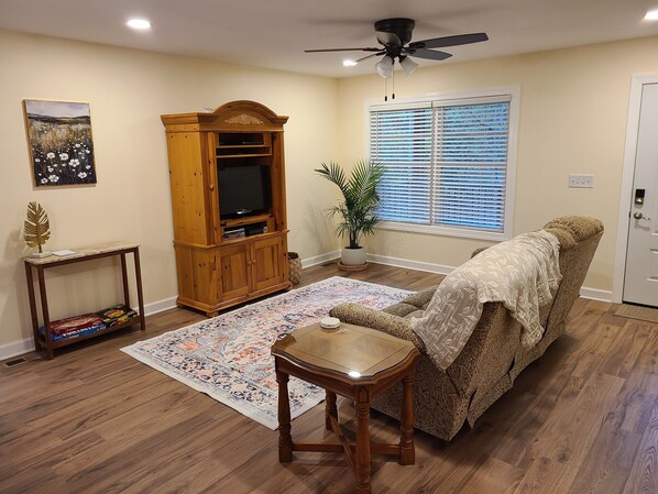 Escape to this house in picturesque Christiansburg. This recently built, adorable home features three bedrooms, including one with a queen bed and another with a full bed, perfect for families or groups. The third bedroom is a reading/hangout room with love seat sofa and chair. Guests enjoy a nice deck overlooking the woods nearby, in a family friendly neighborhood. The space stays cozy year-round with heating and air conditioning. Relax in a peaceful setting that invites you to unwind after a day of exploring. We hope you enjoy what our place and Christiansburg has to offer.
