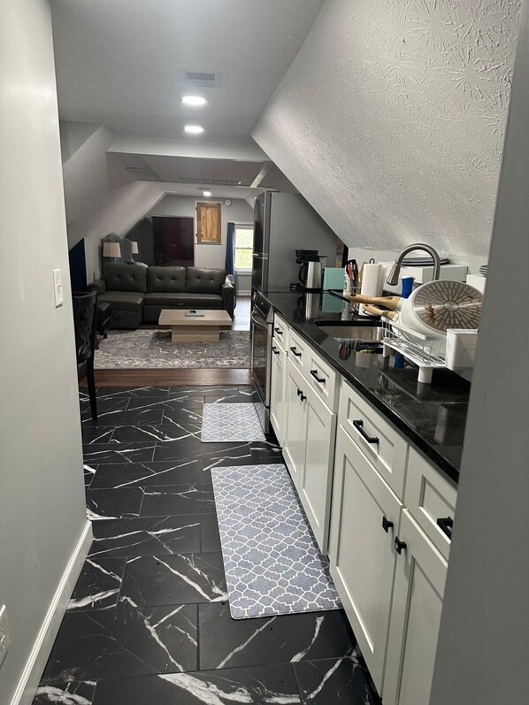 Forget your worries in this spacious and serene loft, a newly renovated historic home located 5–8 minutes from the Cleveland Clinic. It's a revitalized space that blends history with modern living, and its convenient location is perfect for anyone visiting CCF. Whether you’re exploring downtown Cleveland or visiting the Cleveland Clinic, University Hospitals, Case Western Reserve University, or Cleveland State University, we’ve got you covered. and it's also close to the Fairfax Market!