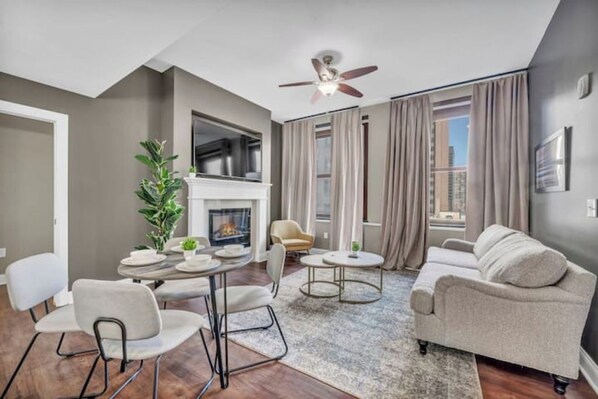 ★ LIVING ROOM ★ The living room is perfect for unwinding after a day in the city. Lounge on the sofa, stream your favorite shows, or enjoy the stylish setting.