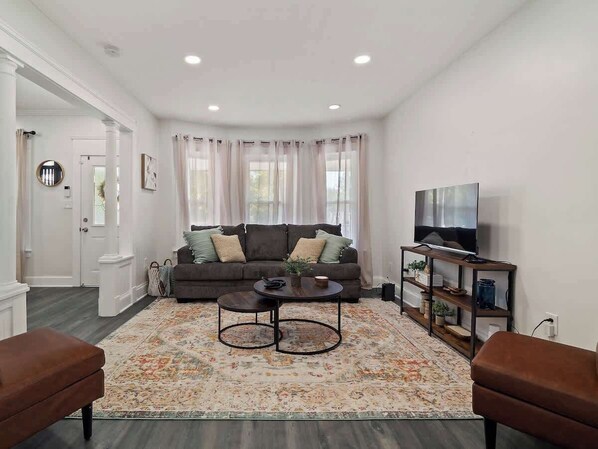 ***30+ night stays ONLY*** Our fully remodeled home in Cleveland's Gordon Square neighborhood features 3 bedrooms (6 total beds) and 2 full bathrooms. Guests can relax in the stylish living room or enjoy meals in the nice dining room. The back deck has a patio table and chairs, and the fenced-in backyard is perfect for dogs.
