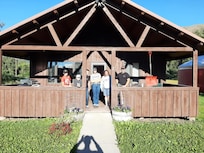 Nestled in the heart of Big Sky country, L Diamond E Guest Cabin #2 offers a charming retreat. Explore nearby fishing and hiking spots or unwind at the cabin's yard with a swing set, monkey bars, and horseshoe pit. The kitchenette is equipped with essentials like coffee maker and dishes.