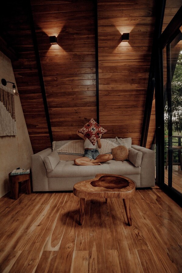 This new unit blends modern finishes with cozy, eco-luxury touches. Enjoy a stocked vintage fridge, coffee machine, hammock and a private balcony ideal for relaxing with morning coffee, journaling, or remote work. Perfect for your next unplugged escape.