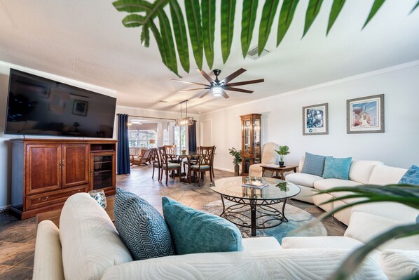 Who says Florida doesn't have seasons?! Depending on the time of year you can experience Bioluminescence season, Sea Turtle watching season (5 minute walk to the beach), Beach Bum season, and fishing is always fun! If you are lucky, manatee and dolphin may visit you off the dock. This home is truly designed for entertaining. Imagine the kids are set up in the living room enjoying their favorite streaming movie, and the adults take in a panoramic water view while dining or playing a game of pool. Home offers so much I suggest scrolling through the photos and then booking, because it will not stay open long.