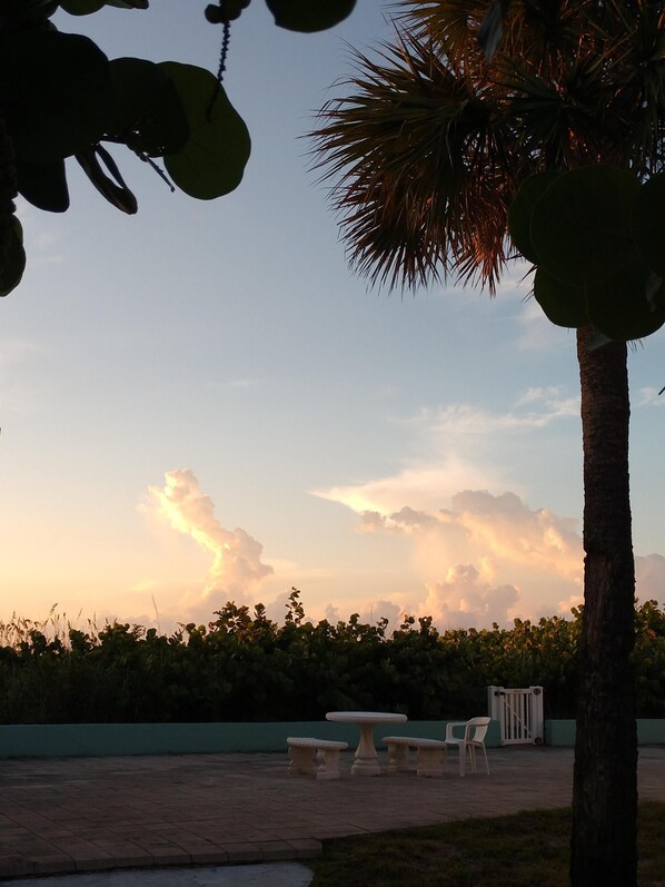 RIGHT ON THE BEACH!...Great Cocoa Beach location, with a more private stretch of beach, but still in close proximity to Cocoa Beach Pier, and very close to the Port Canaveral cruise terminals. This 2 bedroom, 1 bath condo is spacious, bright, and mixes a new and retro look. It is a second floor unit, and has some views of the ocean from the living room and bedrooms. Since we are located on the beach, it's at your beckon call, morning, noon or night! Take a stroll, a swim, fish, or try a surf lesson . In the cooler weather, open a window and fall a sleep to the sounds of the ocean waves crashing on the beach. You can also have an excellent view of the frequent rocket launches without leaving the grounds! The condo is well appointed, with new appliances, smart TV's in the living room and bedrooms, and we have cable and wireless internet. The bedrooms have queen beds, and the couch folds out to a full size sleeper. For your convenience we have beach chairs, easy pop up shelter, a beach utility cart (to get your stuff out there), sand toys, a pack n play, boogie boards, and a skim board. There is also a fresh water shower station to rinse off when you leave the beach. If you have a larger group, we also can rent you a second condo in the same complex. See listing# 7121431