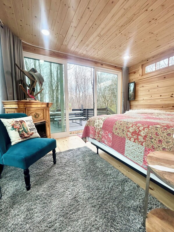 We had an amazing 3 day stay at this beautiful cabin in the woods. The owners, Chanin and her husband, Eric, are one of the best, most accommodating property hosts I’ve ever had the pleasure of meeting. Eric is a builder by trade and he built this exquisite little cabin on Chanin’s grandmother’s property, as well as reno’d her original 100 yr old home! Impressive! They take such care and personal interest in making sure that you have the best, most comfortable stay. They even brought me a cast iron pan at my inquiry and drove over one eve to light the fire for us! Chanin’s attention to detail in the home is impeccable. From the darling cowboy themed decor, to the personalized welcome sign, to the comfortable king sized beds, to the beautiful and super clean bathroom, everything was perfect. They even had labels for light switches and kitchen supplies to make it easy. It’s a tiny home but they did an incredible job of making it super functional and spacious! What makes this cabin really special is the wrap around porch and floor to ceiling windows. It feels like you’re in a tree house. Absolutely stunning. Our stay wasn’t nearly long enough but we will definitely be back!
