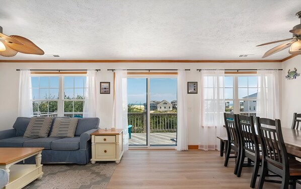 This inviting space is designed for relaxation and fun, featuring plush seating and stylish decor. Stay connected with fast WiFi internet or challenge your companions to a game of pool on the sleek table. Whether you're unwinding after a day at the beach or hosting a lively gathering, the living room provides the perfect backdrop for memorable moments and cherished experiences.