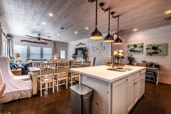 Experience the unique charm of Coastal Vintage in Port Aransas. This beautifully decorated beach vacation home offers TWO master suites with king-size beds and private bathrooms, a large open floor plan, smart TVs in every room, and a fully stocked kitchen that seats 10. Enjoy meals on the back patio with two picnic tables and a gas grill or head to the community pool within one mile of the house.