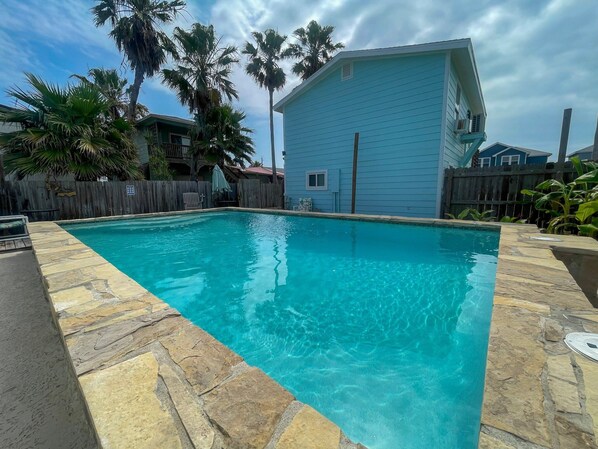 Just a five-minute drive to the pristine beaches, restaurants, shopping, and local attractions. Dive into relaxation with your own private pool, perfect for soaking up the Texas sunshine.