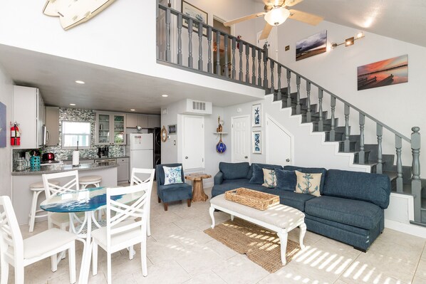 Treasure Den is the perfect mix of coastal charm and canal-side relaxation. Guests love the peaceful waterfront setting, easy access to the pool, and short drive to the beach. Whether you’re fishing off the dock, grilling under the gazebo, or sipping coffee on the patio, this pet-friendly retreat makes every stay feel like home.