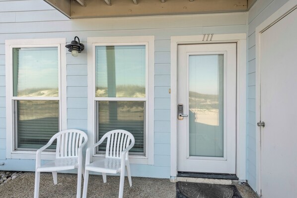 A. Yes, you’ll enjoy a peaceful dune and partial beach view right from the patio seating area.