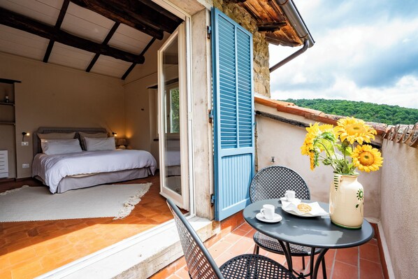Each morning begins with panoramic views that stretch across olive groves, sunlit vistas and the undulating hills of Tuscany and Umbria. From your terrace, the Apennine mountains rise in the distance, while golden light pours through the trees and birdsong greets the dawn. Whether you're sipping espresso by the pool, reading beneath a fig tree, or setting off for a day of exploration, Sussurro in Montagna offers a rare and harmonious sense of place - private, peaceful, and profoundly connected to the land around it.
