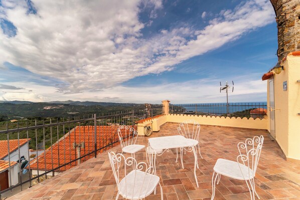 60square meter wide, give the chance to get the best out of your vacation, sunbathing freely and dining with a breathtaking view at the ligurian sea. Terrace is fully equipped with sundecks, sunshades, garden tables and chairs.