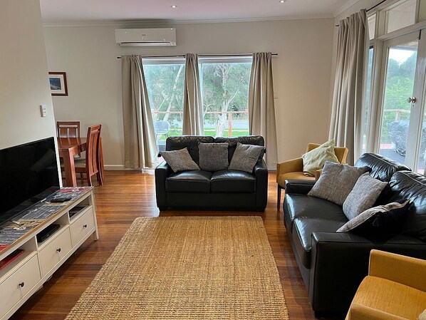 - Living area has a smart TV, lounge chairs and 2 seperate doors to outdoor entertaining area