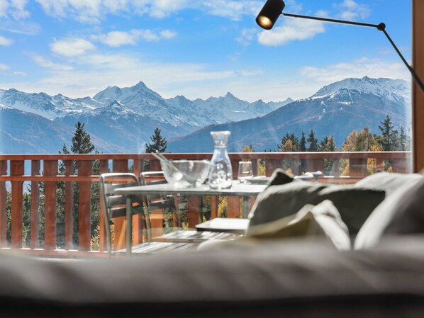 Beautiful, comfortable apartment house "Les Faverges". In the resort 200 m from the centre of Montana, in a sunny position, excellent location: right in the centre but still quiet, 750 m from the lake, 550 m from the skiing area, in a cul-de-sac, south facing position. In the complex: lift, storage room for skis, central heating system. Parking (limited number of spaces) at the house, public car park at 100 m, extra. Shop 200 m, supermarket 150 m, restaurant 250 m, bakery 200 m, 4 minute walk to the centre, bus stop "Montana Poste" 60 m, railway station "Funiculaire Montana Gare" 350 m, bathing lake "Moubra" 1.6 km. Golf course (18 hole) 2 km, tennis 1.6 km, skisport facilities 550 m, cross country ski track 1.6 km, ice rink 500 m. Well-known lakes can easily be reached: Grenon 750 m, Etang Long 2 km. Please note: ski bus (free of charge). Additional accommodations can be booked. The residence is built on an incline. The floors are seen more like levels (calculated from the bottom of the residence). "Les Faverges 11", 2-room apartment 45 m2 on 2nd floor. Bright, renovated in 2025, tasteful and cosy furnishings: living/dining room with cable TV. Exit to the balcony. 1 room with 1 french bed (160 cm, length 200 cm), TV. Exit to the balcony. Open kitchen (oven, dishwasher, 4 induction hot plates, toaster, kettle, microwave, electric coffee machine, Capsules for coffee machine (Nespresso) extra, raclette grill, fondue Set (cheese)). Bath/WC. Balcony 16 m2, south facing position. Balcony furniture. Beautiful view of the mountains and the valley. Facilities: hair dryer. Internet (WiFi, free). Garage space n 11 (1 car), height 200 cm, width 210 cm. Please note: non-smokers only.