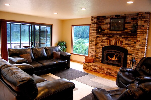 This VRBO feels like you are staying at a friends home -- the furniture feels cozy, the house set up is fantastic for a large family gathering, and the kitchen is well appointed for preparing meals. There are 4 comfortable bedrooms with queen sized beds (3 overlooking the river) and one bunk room with 4 twin beds, two large dining areas, and a comfortable family room with a warm fireplace. We had a great weekend at the house with 6 kids and 6 adults since it was pouring rain outside and miserably cold (typical for a March weekend). If we revisit the area, we would stay here again.