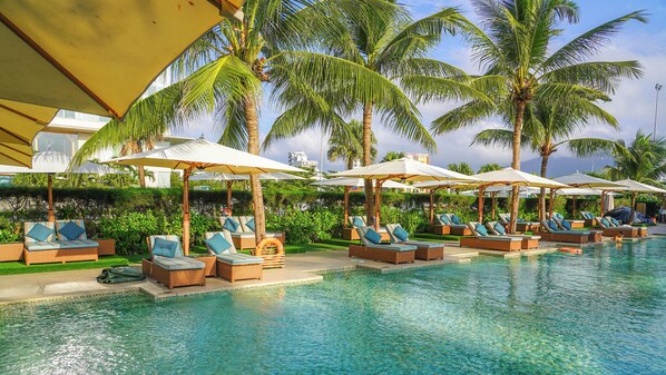 On beach with outdoor pool, near Han Market