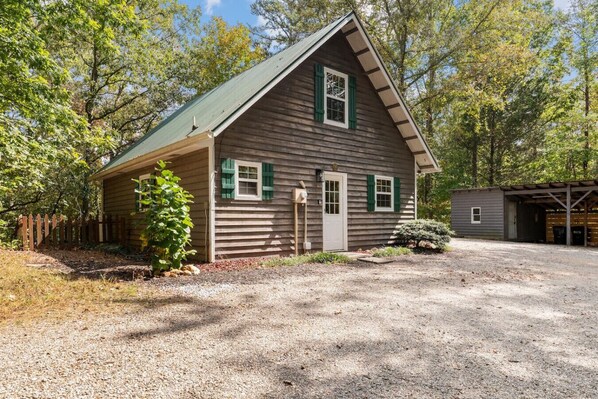 Escape to this charming cabin nestled on a hilltop just outside Dahlonega, offering an absolutely perfect location only two miles from the Dahlonega Square. The cozy home features a gas fireplace, 65-inch smart TV, oversized deck with grill and hot tub, fire pit for s'mores and small dog pen off the side of the deck.