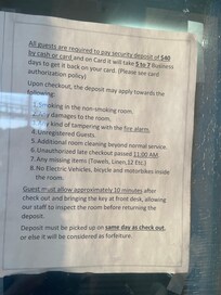 You'll be asked to pay the following charges at the property. Fees may include applicable taxes: