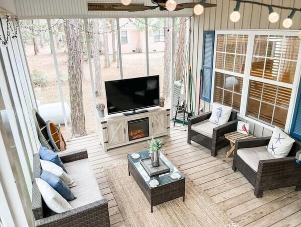 Three adult cruisers are at your disposal, but additional bicycle rentals are less than a mile away. Basketball goal, games, puzzles, books, chalk, and toys are included for family fun! Enjoy the cozy fire-pit for cool fall/winter evenings. Relax on front or back porch, or get adventurous and check out what the island has to offer: beaches, the Alabama Aquarium, Mobile Bay ferry, bird sanctuaries, shops, historic Fort Gaines, restaurants, bike paths, art galleries, public library or public park with a playground and skate park.